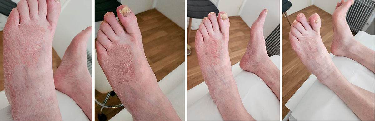 Na jarenlang ontstoken tenen te hebben gehad (gele en rode kleur), nu weer een gezonde kleur.