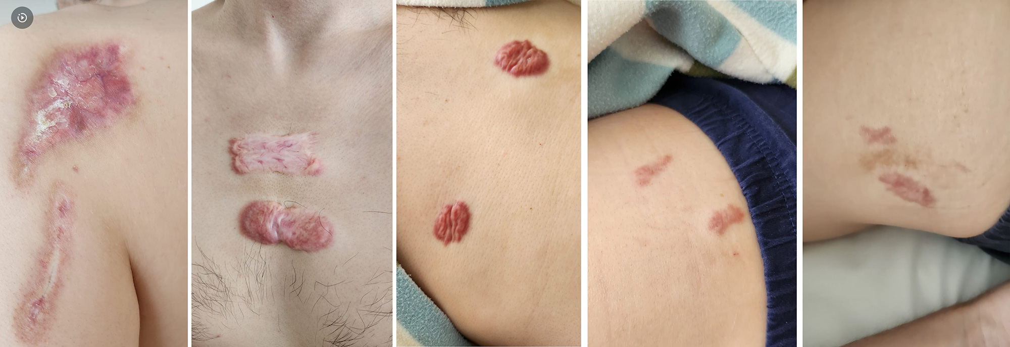 Vorig jaar werd hij aan twee andere keloïden geopereerd, gevolgd door bestraling. Via een vriend van een vriend kwam hij uiteindelijk bij mij terecht. Na een periode van behandeling trad duidelijk herstel op: de grote, harde keloïd op zijn borst werd merkbaar platter en de randen werden beter zichtbaar. Ook verdwenen de jeukklachten en begonnen de kleinere keloïden geleidelijk te vervagen. Daarnaast nam zijn jarenlange vermoeidheid af.